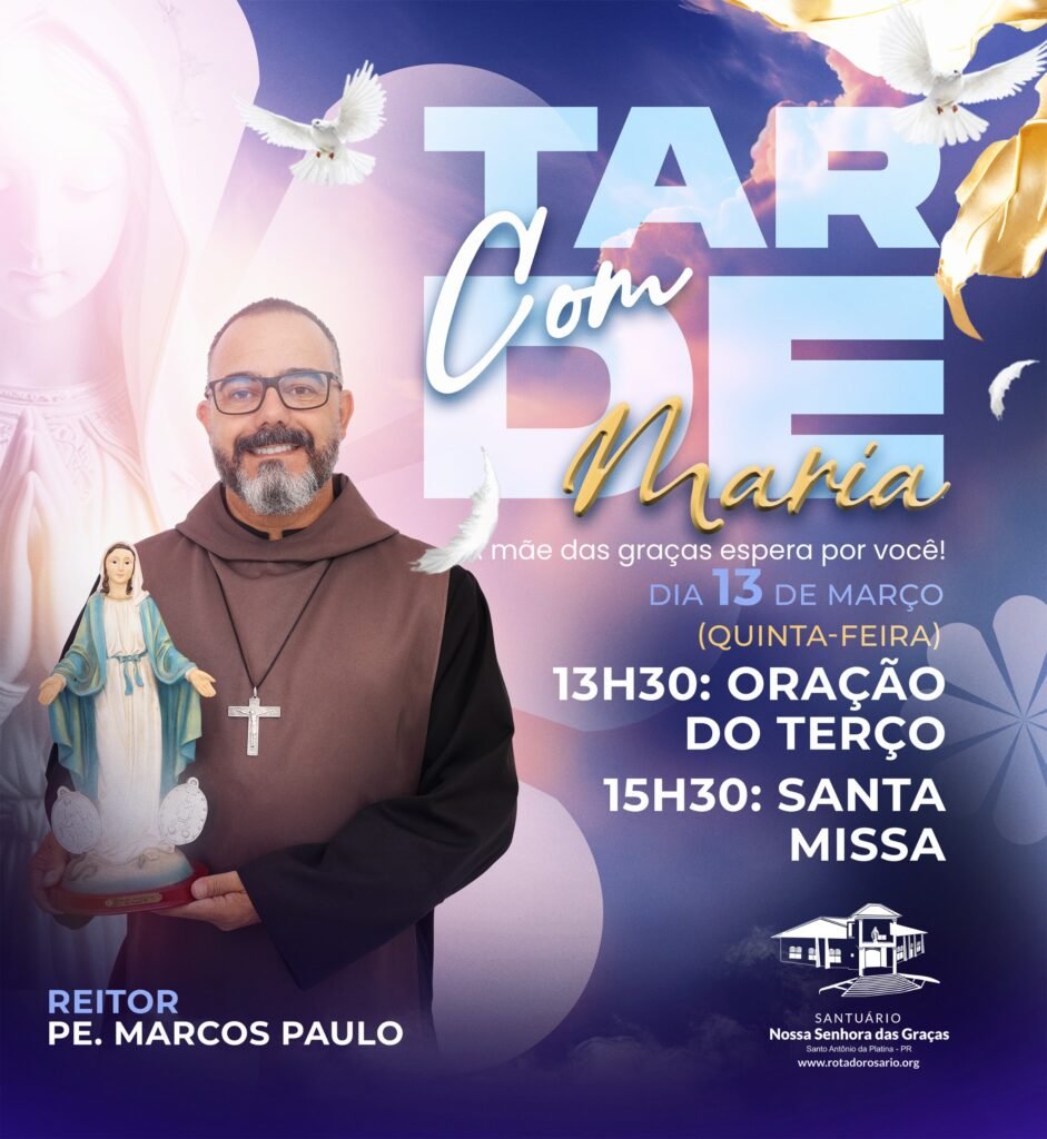 No dia 13 de fevereiro (quinta-feira), a partir das 13h , participe da Tarde com Maria , um momento especial de oração e reflexão no Santuário Nossa Senhora das Graças , com a celebração do Frei Vanderlei . 🌿 A Mãe das Graças espera por você! 🌿 📍 Local: Rodovia PR 92 – KM 349 […]