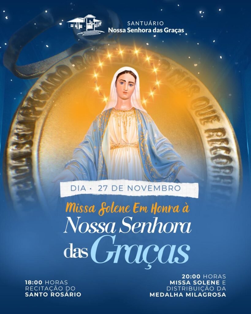 Neste Ano Santo, em que cada passo dado rumo ao Santuário se torna também um passo rumo à misericórdia divina, queremos convidar você, devoto, peregrino, filho querido de Maria, a viver conosco um encontro profundamente orante e cheio de amor no próximo 27 de novembro, festa de Nossa Senhora das Graças.