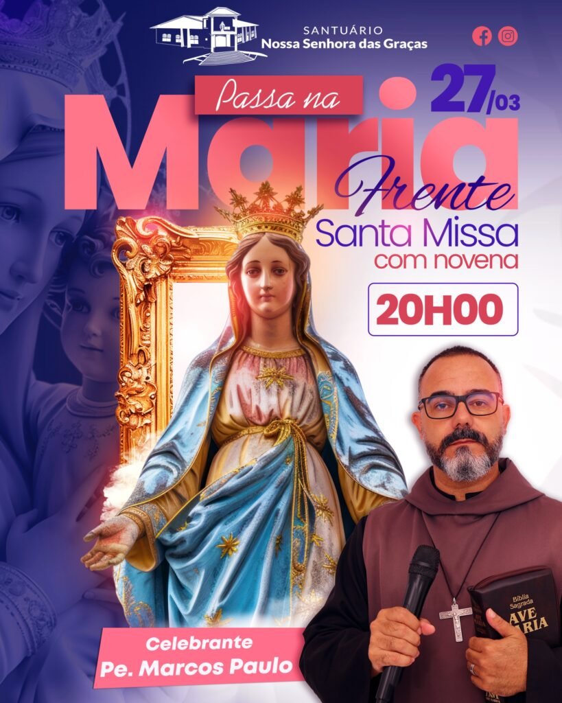 Convidamos você para uma noite especial de fé e devoção, que reunirá o poder transformador da Santa Missa e a força devocional da Novena Perpétua “Maria Passa à Frente”. Esta celebração será uma oportunidade única para nos aproximarmos ainda mais de Deus, contando com a intercessão amorosa de Nossa Senhora, que sempre passa à frente de nossas dificuldades e nos guia em direção à luz de Seu Filho.