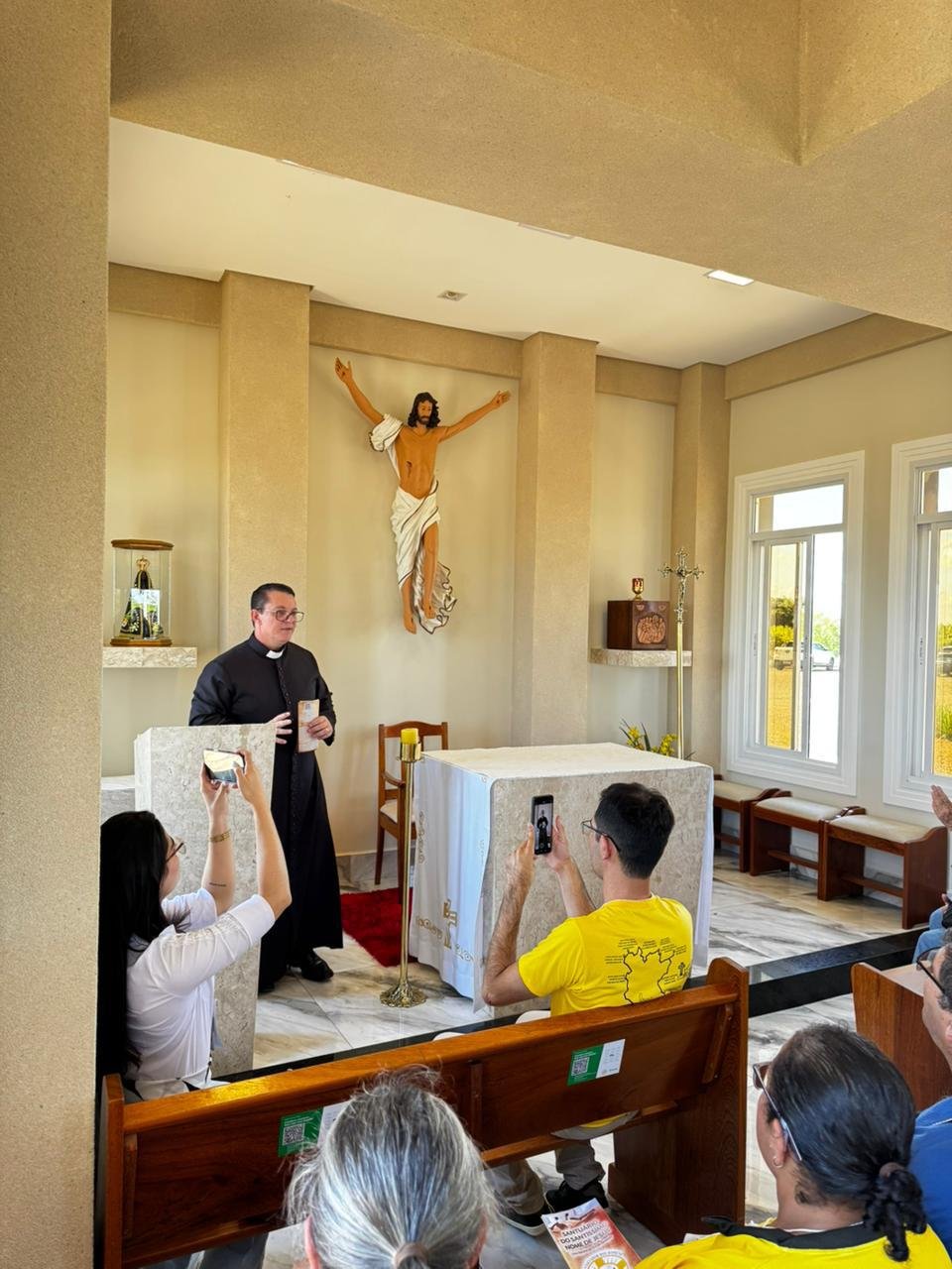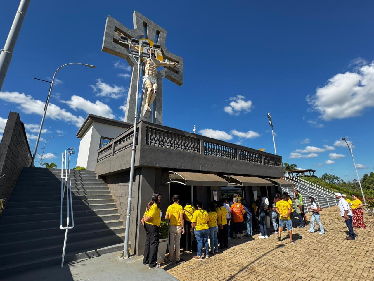 A programação incluiu também uma visita guiada ao santuário, conduzida pelo Pe. Valdemir, que apresentou os belos espaços de oração e contemplação do local, incluindo o mirante, a cruz monumental e o espaço do sepulcro de Jesus.